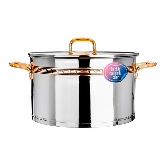 Cacerola de acero inoxidable acabado espejo con tapa de vidrio 9 litros SS28 Qualité Premium