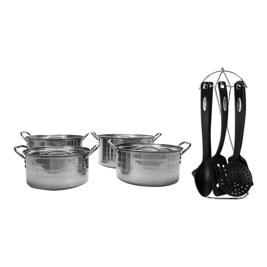Horneado Perfecto: Juego de Ollas 8 piezas Hot Spot + Juego de 5 utensilios con base Qualité