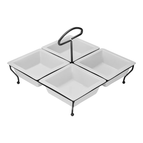 Juego de 4 botaneros de cerámica con base metálica Y13 Home Sweet Home