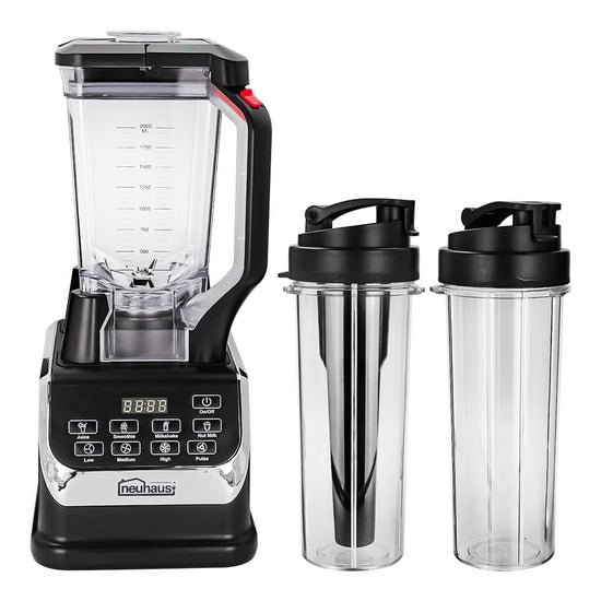 Licuadora digital con vaso de Tritán y 2 vasos para batido negra Hurrikane Neuhaus